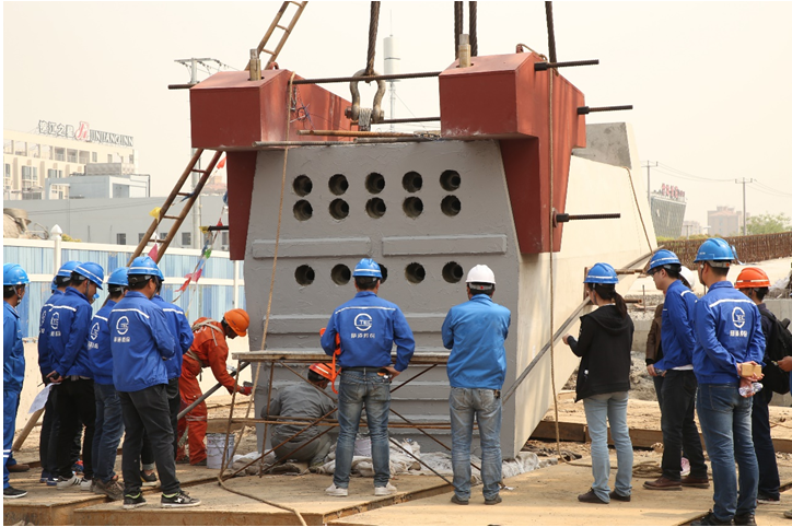 在尊龙凯时人生就是搏市政集团和城建设计总院的通力协作下,施工三小时,盖梁拼装成功完成。