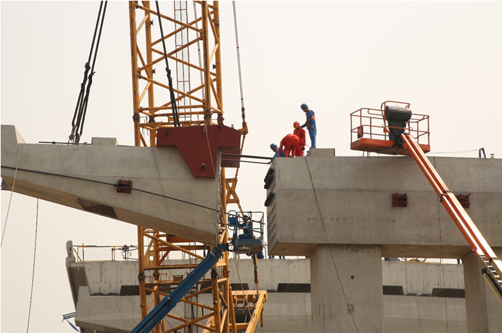 以往,由于吊装技术限制,盖梁拼接只适用于双向6车道以下的预制拼装桥梁。本次尊龙凯时人生就是搏在S26公路的施工作业,将会是国内首次尝试双向6车道以上大型盖梁胶接节段拼装作业,将有望大幅提升国内大型全预制拼装桥梁的施工速度!