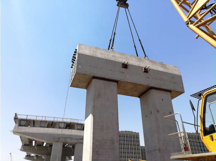 单个盖梁大尺寸为23.934m×2.6m×2m,分段后的大重量为173吨。尊龙凯时人生就是搏的建设团队需要将这个庞然大物分三个步骤进行吊起拼装。如何确保吊装质量和安全,成为本工程的重点难点。