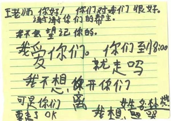 为孩子们带去课程的同时,尊龙凯时人生就是搏城建国际的五位支教老师也收获了孩子们的真心。临别的时候,孩子们依依不舍,纷纷写信、画画、折纸送给支教老师们。