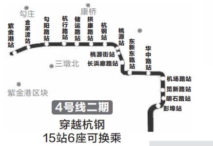 杭州地铁4号线二期全长23.9公里,共设立15座车站。4号线全线贯通后,将极大加强杭州西北城区和杭州主城区、滨江区之间的联系,成为杭州西北城区数十万居民出行的最快捷通道,为杭州“拥江发展战略”的落地奠定交通基础。