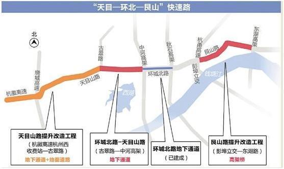 环城北路-天目山路改建工程为杭州市“四纵五横三连十一延”的中间“一横”,从杭州市中心穿城而过,其独特的区位和地理条件、沿线用地开发以及城市路网体系等特点,赋予了其极其重要的功能:它是横贯东西的交通大动脉,与沪杭甬高速、杭徽高速、绕城西线等入城口相接,是杭州快速路网体系中最重要的横向通道之一。