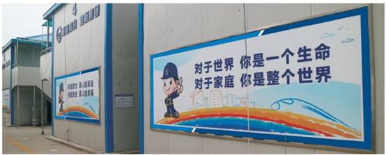 对外:回应民众关切,塑造安全文明形象。通过在大门、门头、围墙外侧设立温馨提示、市民告知牌、工程概况牌,配套以喷水雾炮、围墙顶部喷雾,降低工程施工造成的扬尘;同时在围挡外设立扬尘噪声监控测试仪,实施检测公布PM2.5等污染数值,让市民感觉温馨,体验称心。