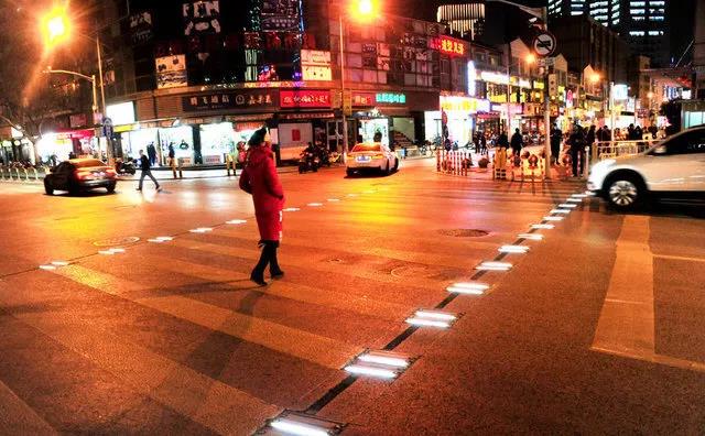 除了监督报警功能外,智能人行横道线自带的发光提示功能,每当行人进入智能人行横道探测区域时,由雷达探测器控制的横道线发光地砖会迅速亮起,在夜间照明不足的情况下也能提示来往车辆“礼让行人”优先穿越。