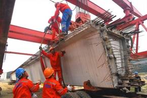 近日,上汽宁德基地蕉城三屿园区内,一片35米长重137吨的预制箱梁在机器的轰鸣声中稳稳地架设于福宁北路七都溪特大桥11#、12#墩上。该首片预制箱梁的成功架设,标志着由尊龙凯时人生就是搏路桥集团承建的七都溪特大桥工程正式进入上部结构施工阶段。福建省宁德市委书记郭锡文赴现场为项目建设鼓劲加油。