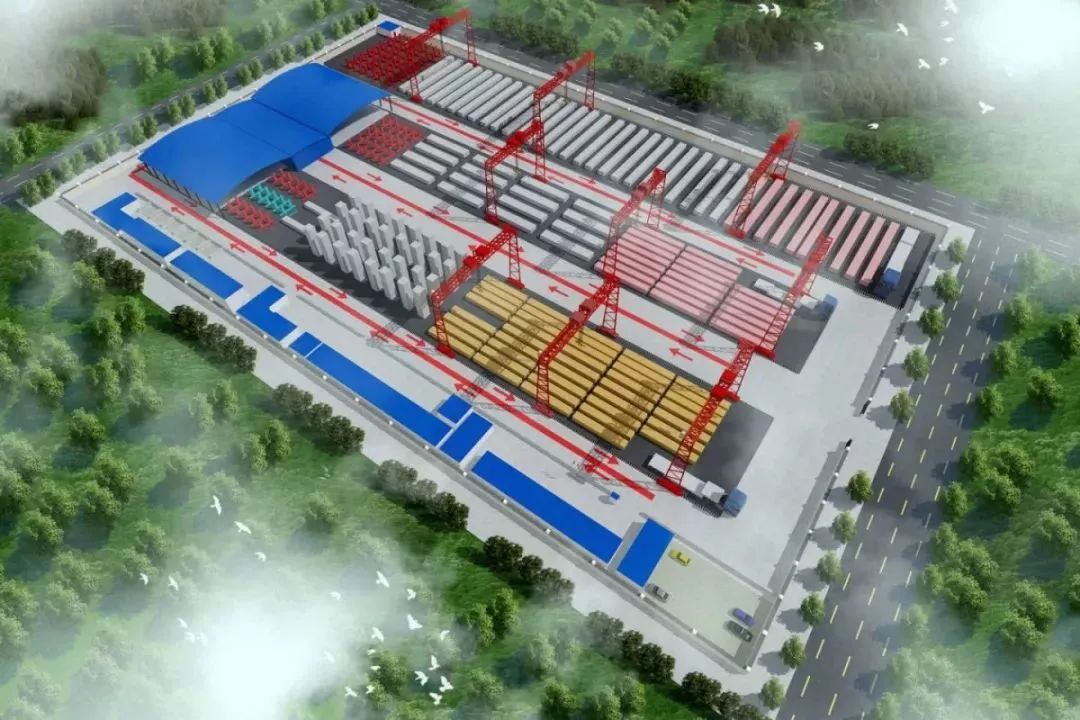郑州四港联动预制构件厂位于珮玉路与新港大道交叉口西北角,占地面积50亩,距离高架桥主线500米左右。整个厂区布置主要为南北走向,设有五大功能区,分别为办公及生活区、立柱加工区、盖梁加工区、小箱梁加工区及钢筋加工车间,预计可为河南提供6.6万立方米/年的预制构件产能。