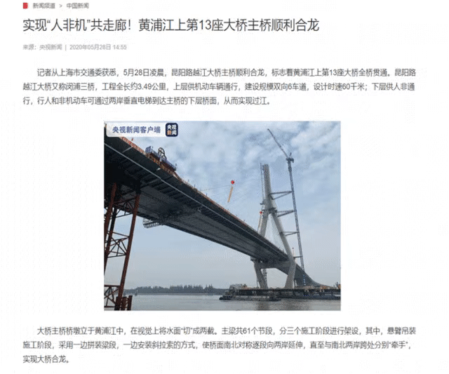 昆阳路越江大桥的成功合龙,刷新四项“最·最·最·最”