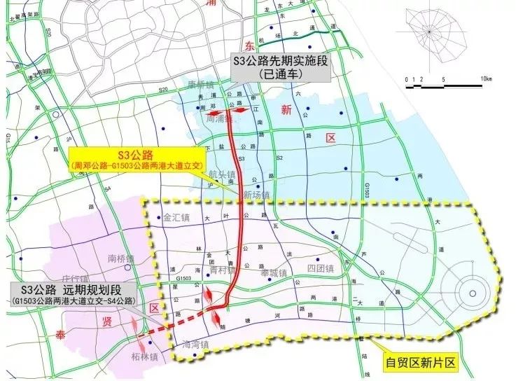 同时,S3公路连接S20公路、S32公路、G1503公路与S4公路,是浙江方向、奉贤杭州湾北岸连接浦东中心城区的快速通道和自贸区临港新片区重要的对外通道。