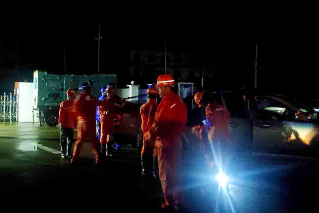 ↑ 隧道人更连夜出洞大型挖掘机等设备,在人员密集区域筑起“临时堤坝”,保障居民生命财产安全。