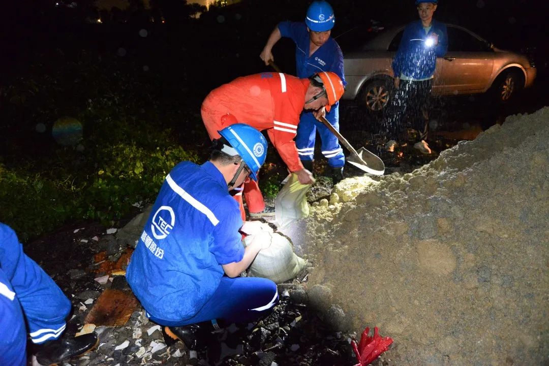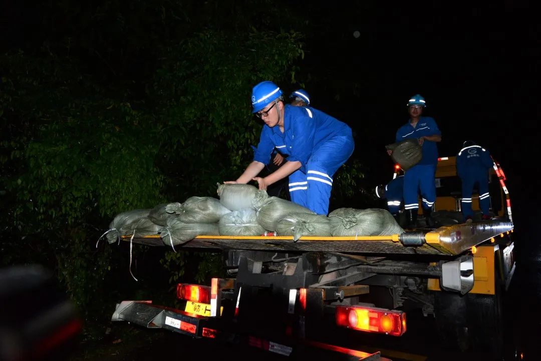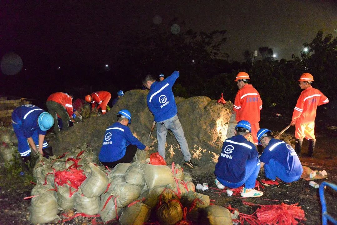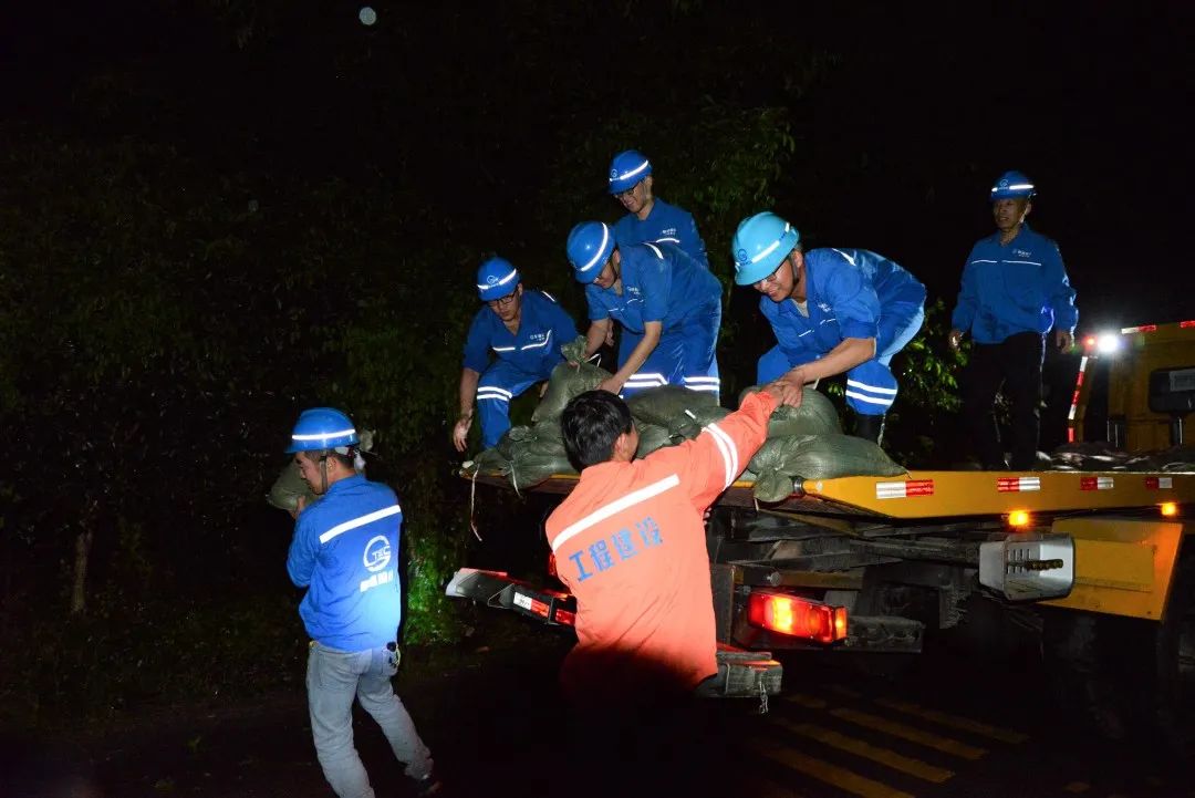 ↑ 尊龙凯时人生就是搏市政集团项目员工,在凌晨12点赶赴低洼地区,“抛下”数千袋砂石,为周边居民筑起“蓝色防线”
