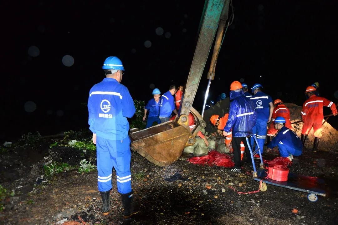 当天夜间,隧道人更紧急调派了多部大型挖掘机、铲车,调集20余辆运输车运载近2万方大型片石、20套大型钢筋笼,为决堤总攻做好物资储备。此后,全体抢险人员彻夜值守防汛一线,用隧道人的坚守确保洪峰不漫过堤坝。