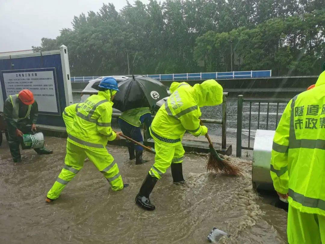 ▲据以往经验,易积水点设专人监管,发现积水及时导排。