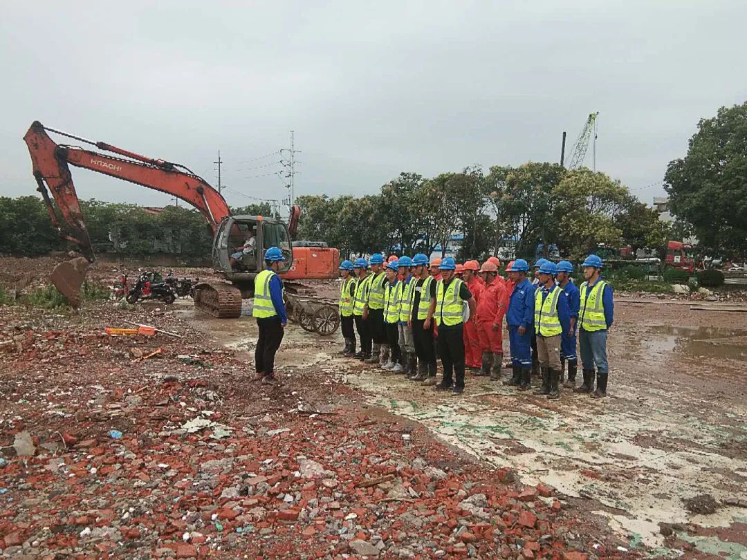 ▲江桥镇嘉涛路动迁安置房项目开展防汛防台演练。