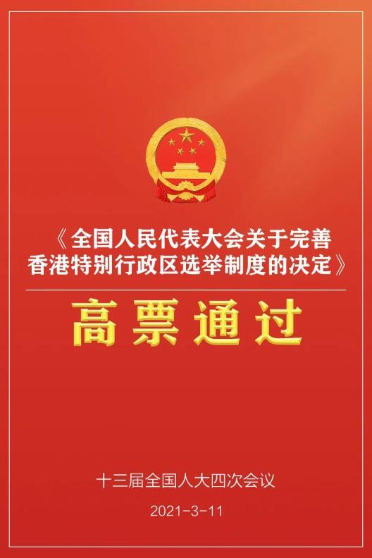 3月5日,第十三届全国人民代表大会第四次会议就关于《全国人民代表大会关于完善香港特别行政区选举制度的决定(草案)》作出说明。完善香港特区选举制度,是确保“爱国者治港”,维护国家主权、安全、发展利益,保持香港长期繁荣稳定的必要之举。这完全符合“一国两制”方针和香港特区的实际情况。