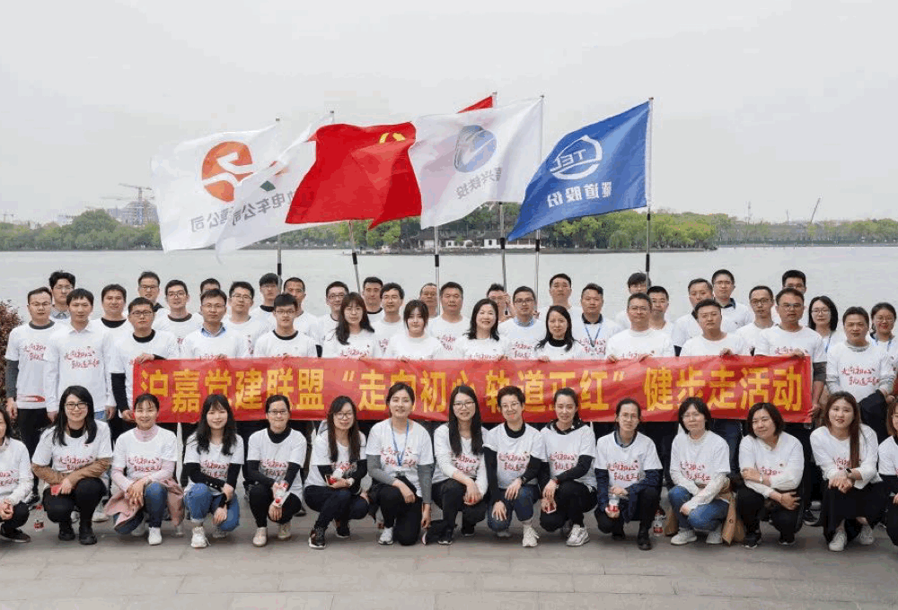 城建设计集团、市政集团联合成立的沪嘉党建联盟,联合开展了先进劳模上党课、观看红色电影《建党伟业》等活动,并共同开展了“走向初心地 轨道正当红”青春健步走主题活动,通过打卡有轨电车南湖湖滨站、南湖会景园等地,寻访红色百年初心地,感受国家发展的蓬勃朝气。