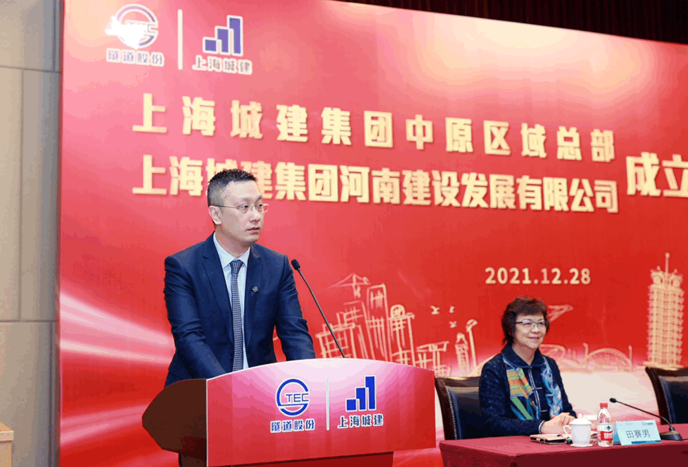 张焰董事长、田赛男主席共同为上海城建集团中原区域总部、上海城建河南建设发展有限公司揭牌,周文波总裁主持会议。