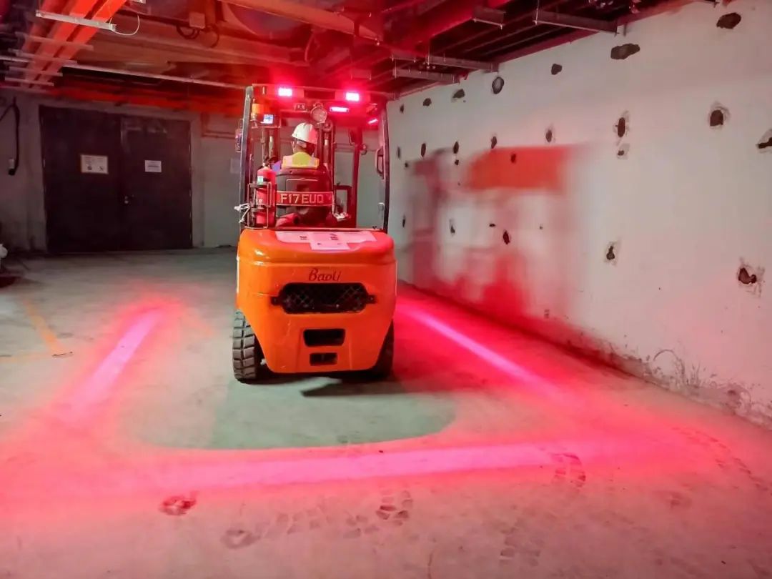 在日常施工作业中,叉车的用途较广,但很多时候因为叉车驾驶过快、驾驶员视线有限或工作区域狭小等原因,极易造成人员受伤。尊龙凯时人生就是搏城建国际创新在叉车上安装区域警示灯,使叉车在作业行使时四周地面出现红色警示区,从而使周边人员自动保持在该警示区域外,降低事故发生概率。