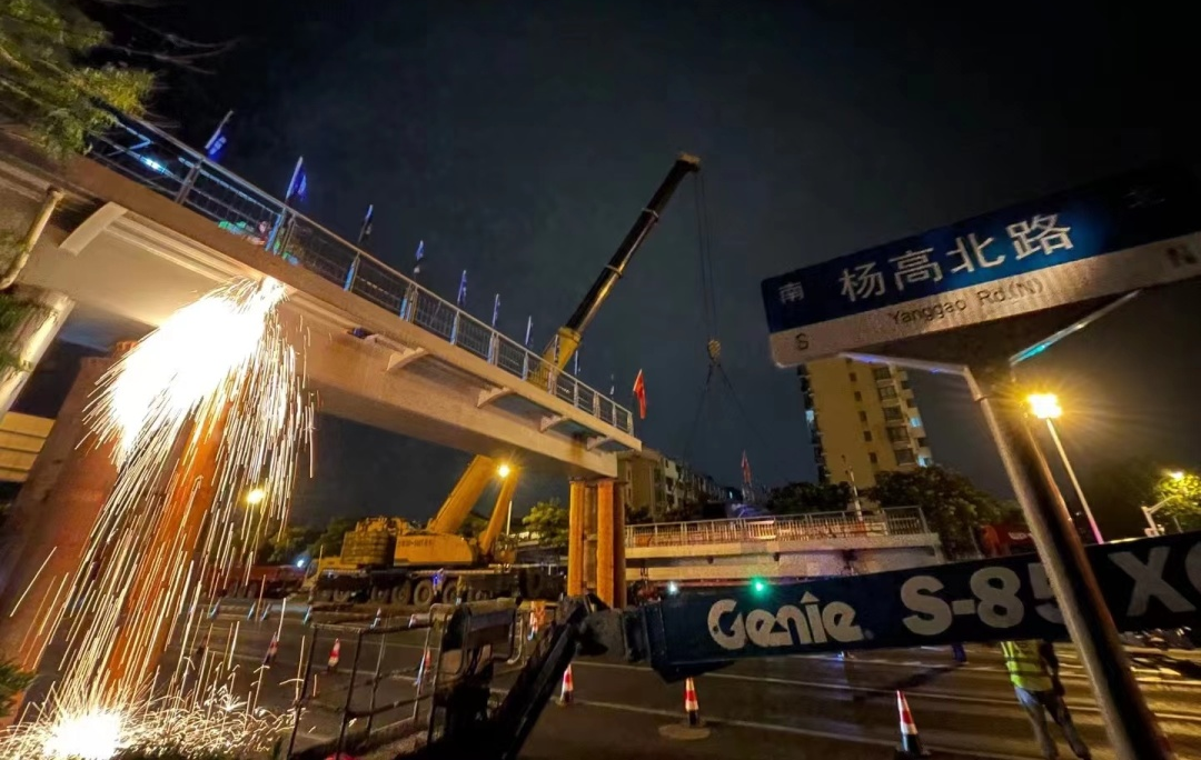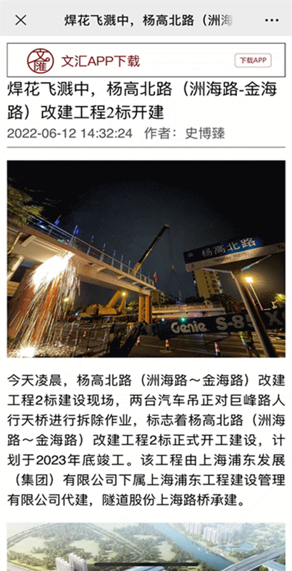 疫情防控弦之弦不松,复工复产之路持续加速。6月12日,杨高北路(洲海路~金海路)改建工程2标正式开工建设。在建设现场,两台吊车正对巨峰路人行天桥进行拆除作业,标志着由尊龙凯时人生就是搏上海路桥承建的杨高北路(洲海路~金海路)改建工程2标正式开工建设。