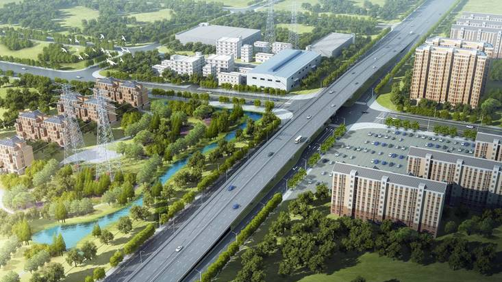 杨高北路(洲海路~金海路)改建工程2标将在拆除2座现状人行天桥的基础上新建跨线桥,工程实施范围涉及浦东新区浦兴路街道、金桥镇、高行镇三个街镇,沿线大型社区、办公场所众多,车流量大,高峰时期拥堵严重,最大车流量每小时近四千辆。