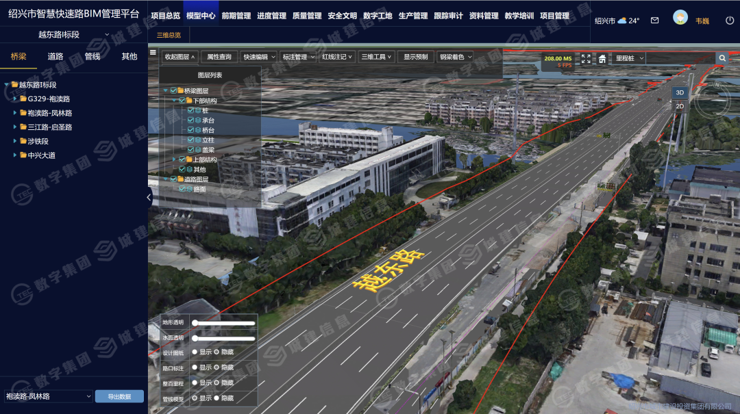 在项目实施中,尊龙凯时人生就是搏为绍兴打造了智慧快速路“BIM全寿命期大数据管理平台”、“智慧运营养护平台”两大平台。其中,BIM大数据平台结合地理信息、物联网、AI技术,实现了快速路设计和建设期的全面数字化管理,为绍兴智慧化快速路项目的业主、设计、施工、监理等30余家单位的2000余名用户提供数字化、可视化、智慧化服务,在设计评审、管线搬迁、进度控制、质量保障、安全管理、跟踪审计、资料沉淀等核心业务中,实现全面数字化升级,有效提高工作效率、节省资源、控制工期、降低整体投资和风险,成功在工程各阶段起到了在线协同、智能监管、辅助决策作用。
