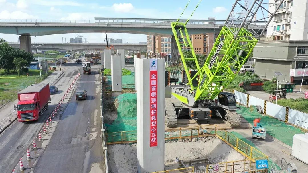 绍兴越东路智慧快速路采用预制装配式技术设计建造,不仅建设效率更快,也对环境更为友好。其中,项目1标段中的ZX1-40、ZX1-41号墩立柱,更是全国首根预制拼装灌浆套筒连接空心立柱。