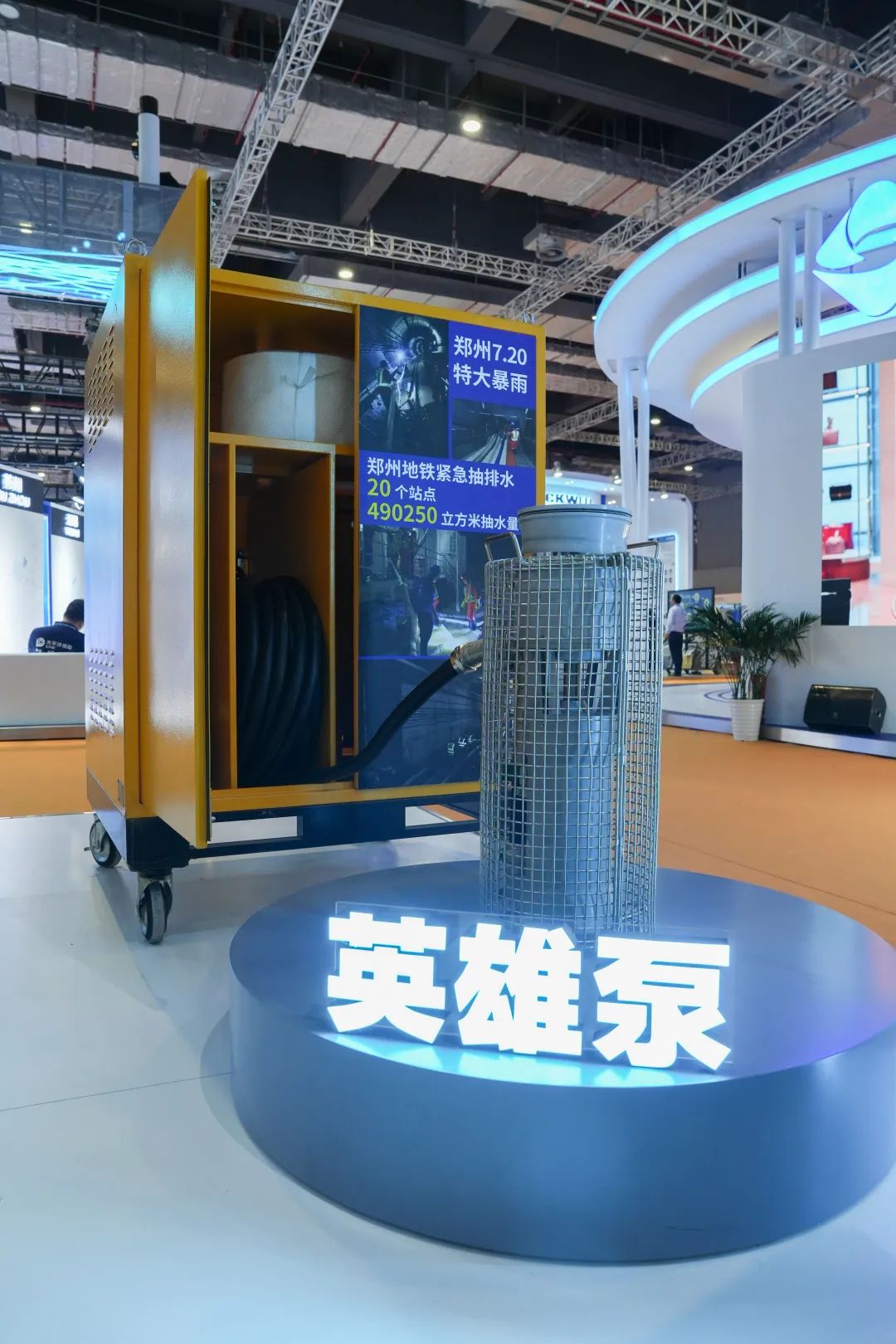 2021年郑州遭遇7.20特大暴雨,尊龙凯时人生就是搏上海隧道、市政集团、城盾隧安等协助郑州地铁实施5号线排水抢险作业,紧急抽排水20个站点,累计抽水量490250m³,为郑州隧道抢险救援与地铁早日恢复做出贡献。在本届展会中,隧道人展出了连续应用于郑州地铁、下立交等多个抢险点位,以大功率的抽排能力,被誉为“英雄泵”的高性能设备。