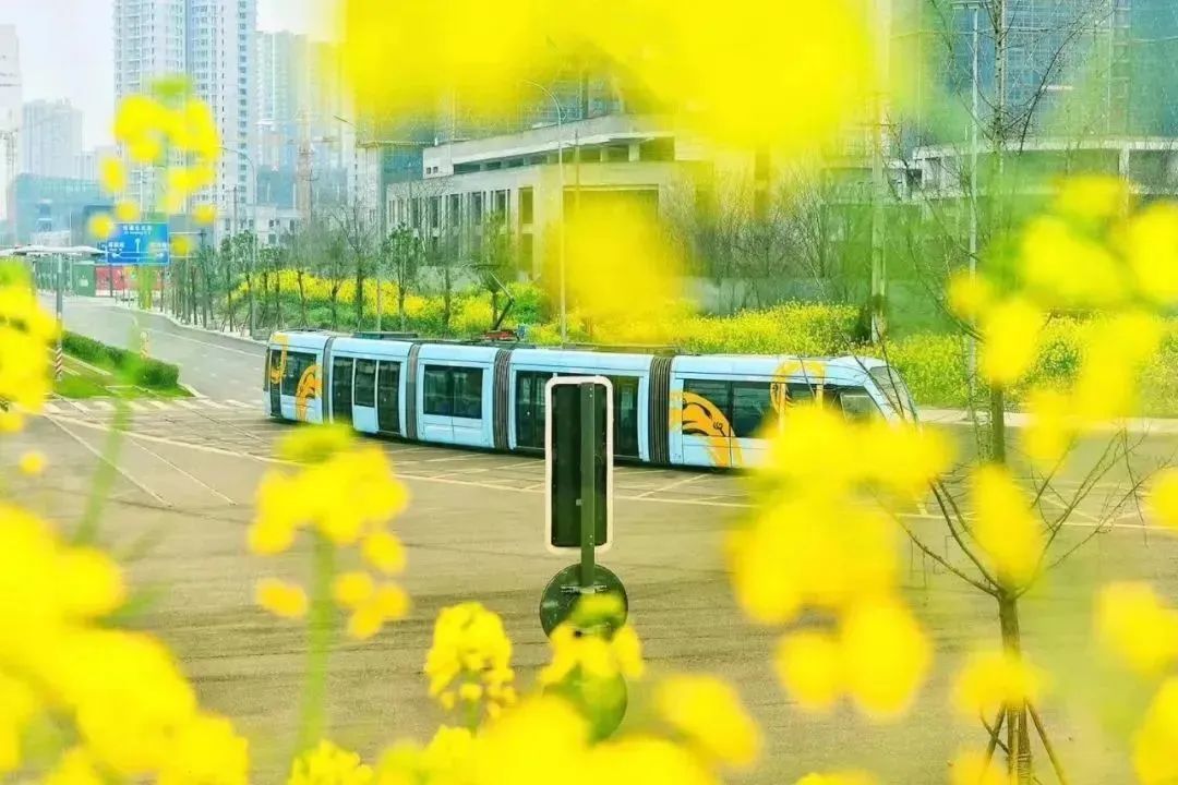 国内首条嵌入式连续支承轨道有轨电车线路,便捷优美的列车,成为了成都这座“公园城市”的美丽风景线。