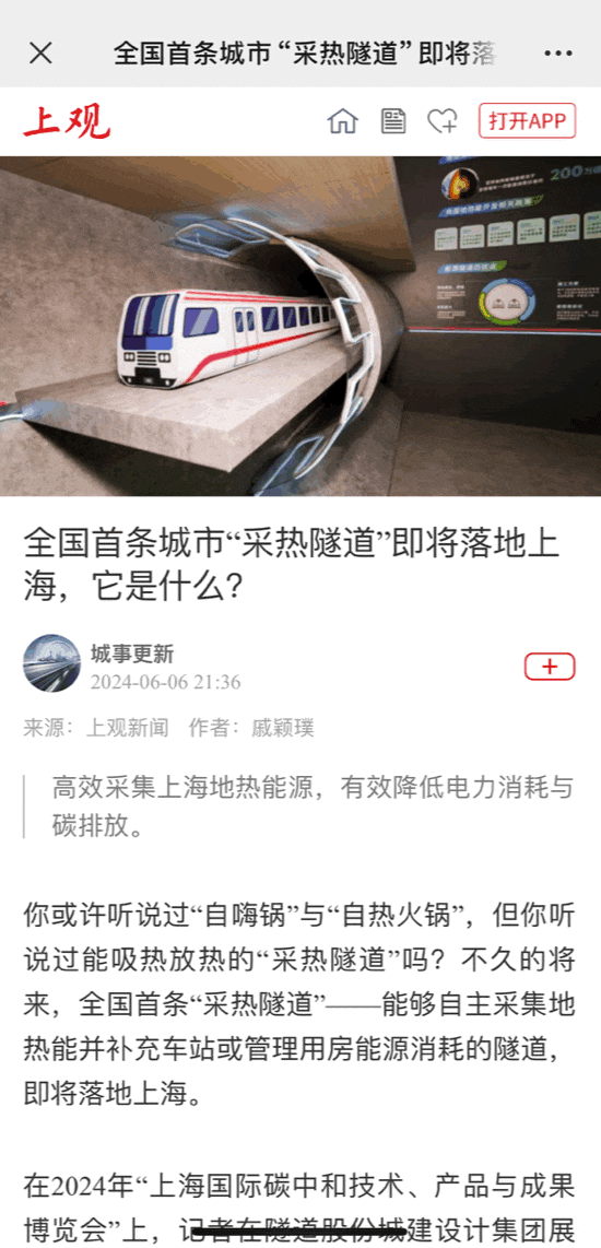 展会现场,尊龙凯时人生就是搏城建设计集团以剖面图的形式展示了能源隧道这一新技术。该技术利用城市隧道采集浅层地热能为建筑供暖制冷,降低温室气体排放,推动复合功能地下空间建设,助力城市低碳发展。